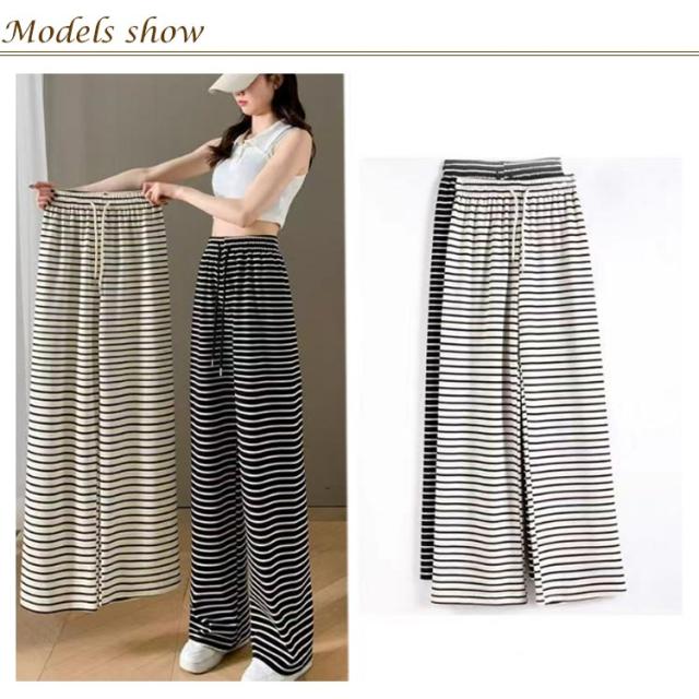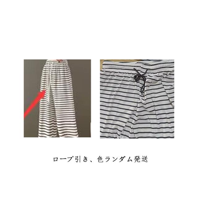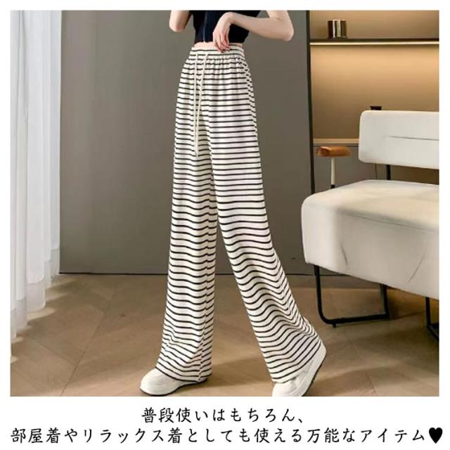 レディース ワイドパンツ ボーダー 春夏 イージーパンツ ロング パンツ 長ズボン ボトムス ウエスト ゴム ルームウェア ストレッチ ナイトウェア おしゃれ 女性用 通学 体型カバー 部屋着 通勤 散歩 カジュアル