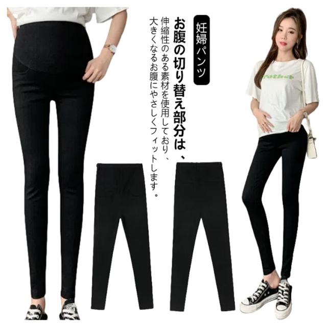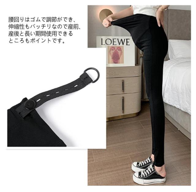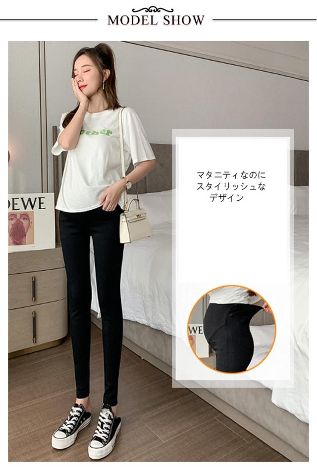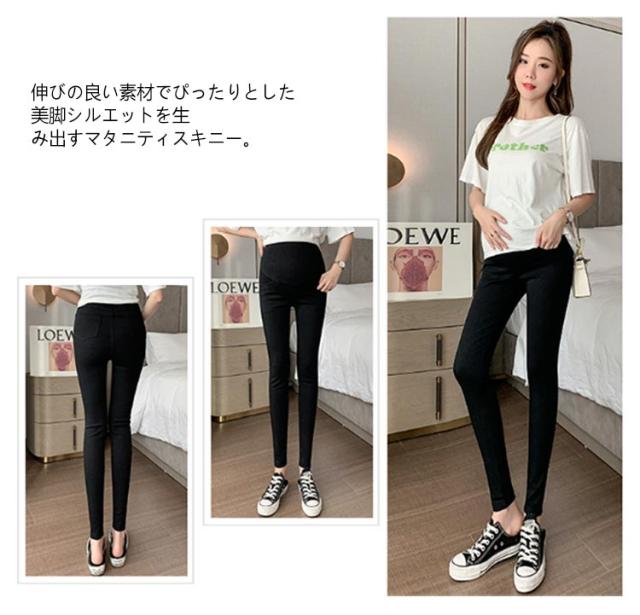 マタニティパンツ 美脚 スキニー パンツ ストレッチ 細身 スリム ハイウェスト 妊婦パンツ 腹帯型 腹帯付き マタニティウェア アジャスター付き 妊娠 産前 産後 通勤 仕事 春 夏 秋