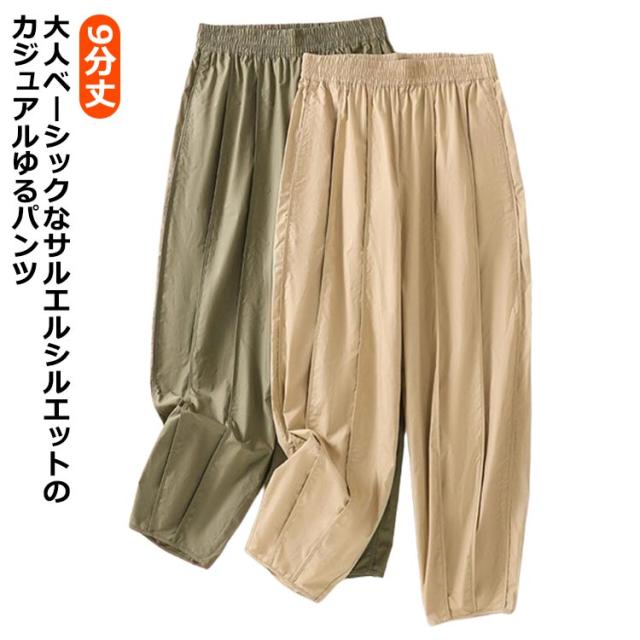 送料無料サルエルパンツ 9分丈 チノパンツ ワイド ボトムス サルエル パンツ ロングパンツ レディース テーパードパンツ 大きいサイズ 高見え 楽ちん ゆったり 体型カバー きれいめ バルーン カジュアル キャンプ 大人女子 コットン 春 夏