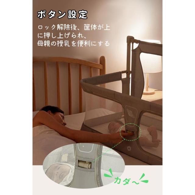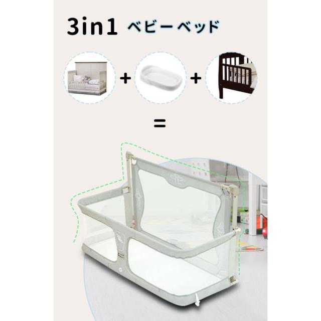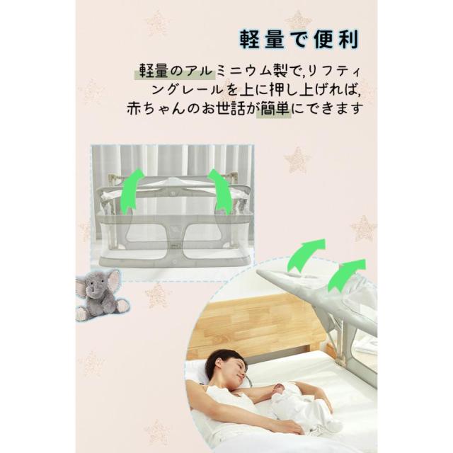 ベビーベッド 添い寝 折りたたみ 持ち運び 多機能ベビーベッド 組み立て簡単 転倒防止 ハイローベッド 通気性 睡吐防止 新生児ベッド 通気性 1~3歳