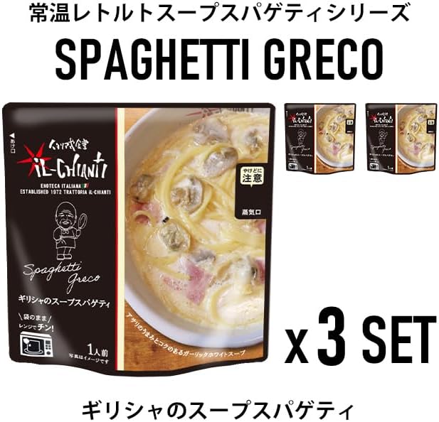 イル キャンティ ギリシャのスープスパゲティ レトルトパスタソース250g アサリのうまみとコクのあるガーリックホワイトスープ 常温保存 スープパスタ (3)