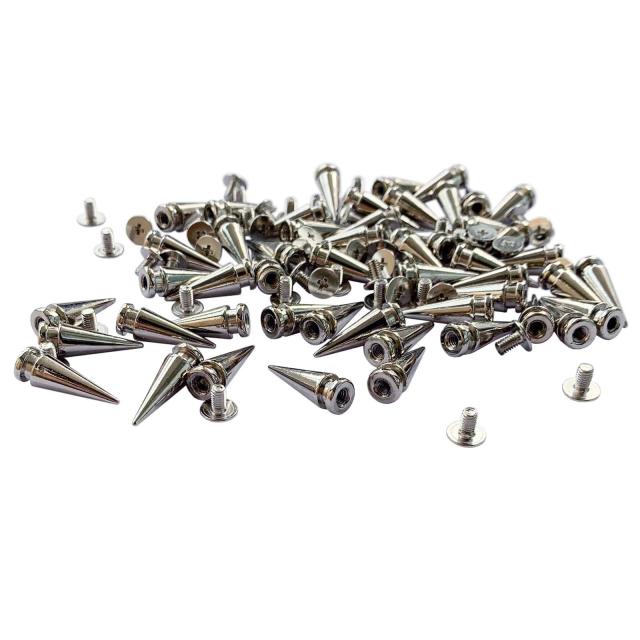 50組 スタッズ パーツ 鋲 ネジ式 スパイクスタッド 円錐タイプ パンク リベット DIY服 レザークラフト用 シルバー