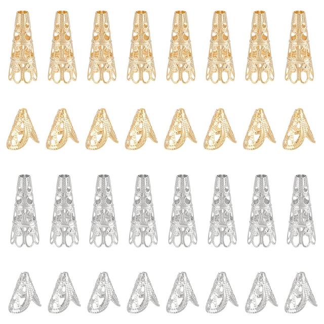 UNICRAFTALE 約40個 2スタイル 2色 ビーズキャップ 円錐形 花形 座金 花座 304ステンレス 透かし 花弁キャップ ビーズコーン 金属 メタル