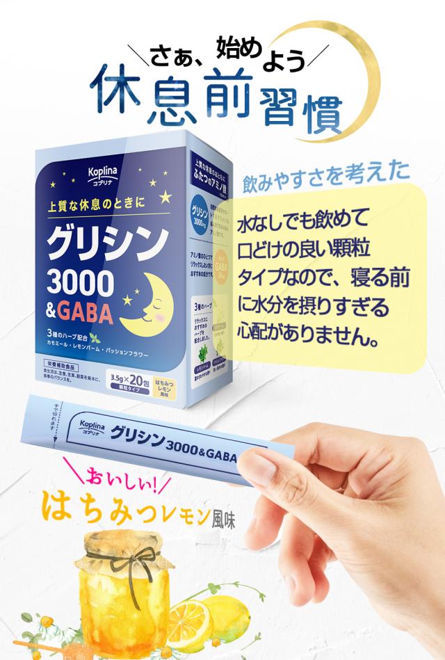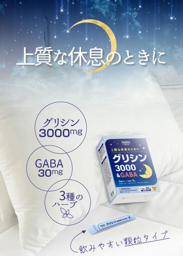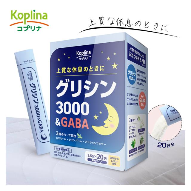 \在庫処分 49%OFF〜/ グリシン3000&GABA 3.5g×20包 20日分【飲みやすい顆粒/スティック包装/水なし/上質な休息/リラックス/アミノ酸/3種のハーブ入り/健康食品/安心国内製造/コプリナ】