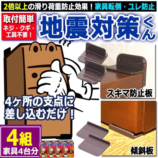 2倍以上の滑り荷重防止効果!家具転倒・ユレ防止 地震対策くん[4組] (防災 震災 ノンスリップ効果 クサビの原理 就寝中)