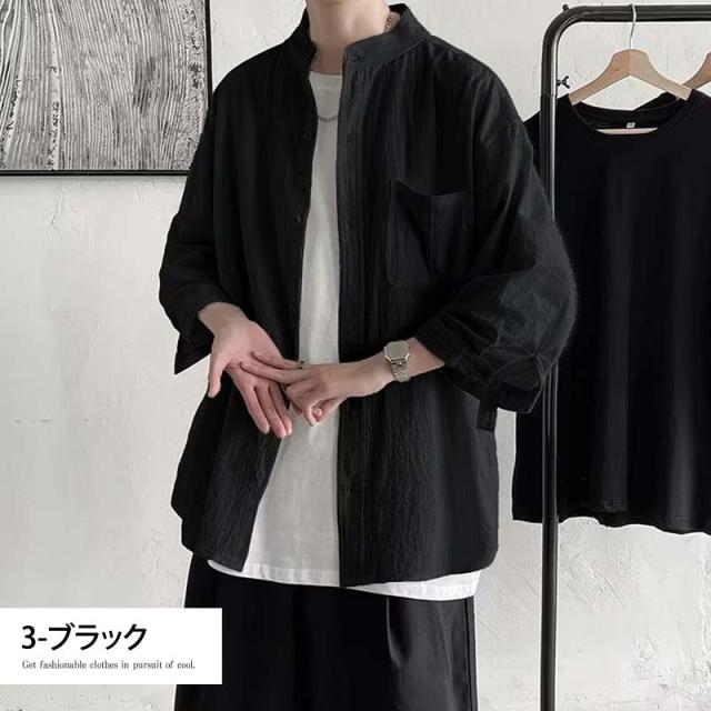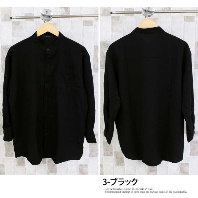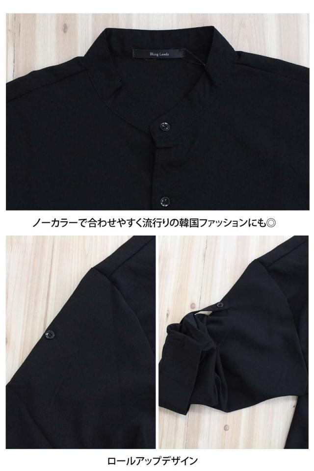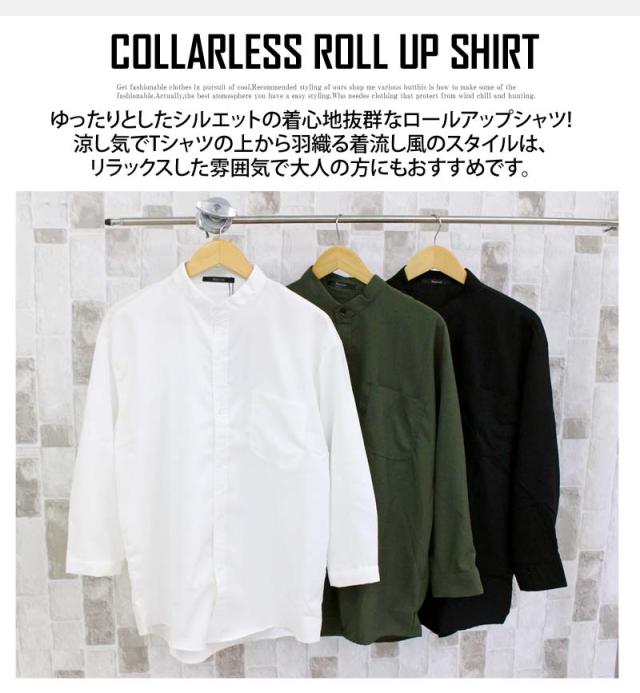 送料無料 無地7分袖ロールアップシャツ ゆうパケ