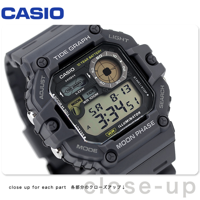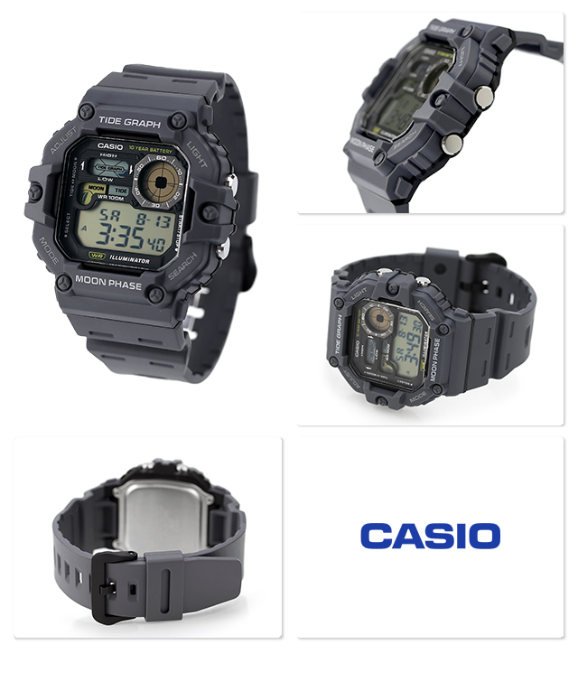 7年保証キャンペーン カシオ CASIO クオーツ チプカシ 海外モデル メンズ 腕時計 WS-1700H-8AVDF STANDARD デジタル グレー ◆海好きは注目!マリンスポーツをする方に嬉しい大型ケースと便利な機能を備えたデジタルウオッチです。堅牢なケース形状や多窓フェイスなど、メカニカルな歯車を思わせる重厚感のあるデザインです。クールなガジェットの外観からインスピレーションを得た LCDを備えたこの時計は、必要な情報をはっきりと見やすく読みやすい形で提供します。スタイルと同様に機能も充実しており、タイドグラフ、ムーンデータ、最大100メートルの耐水性により、最もアクティブな日に必要なものを提供します。 日本未発売モデル