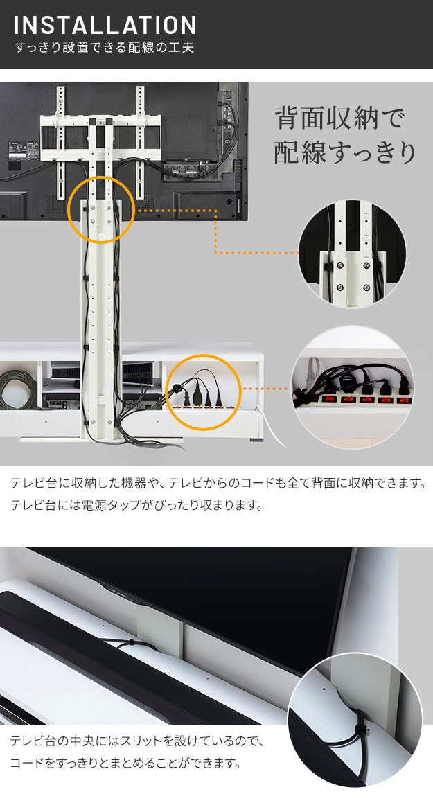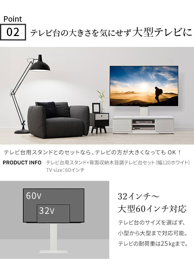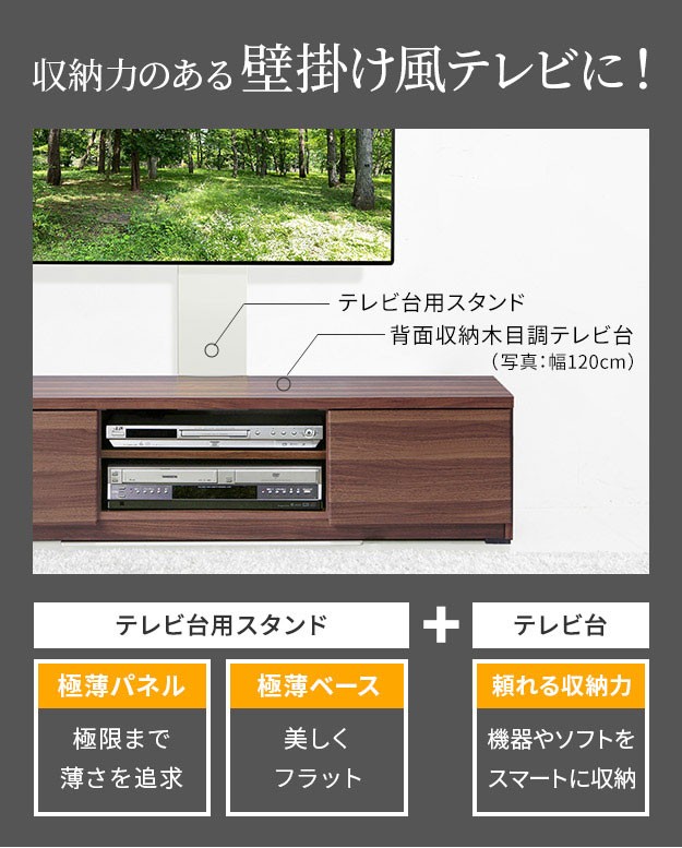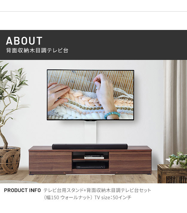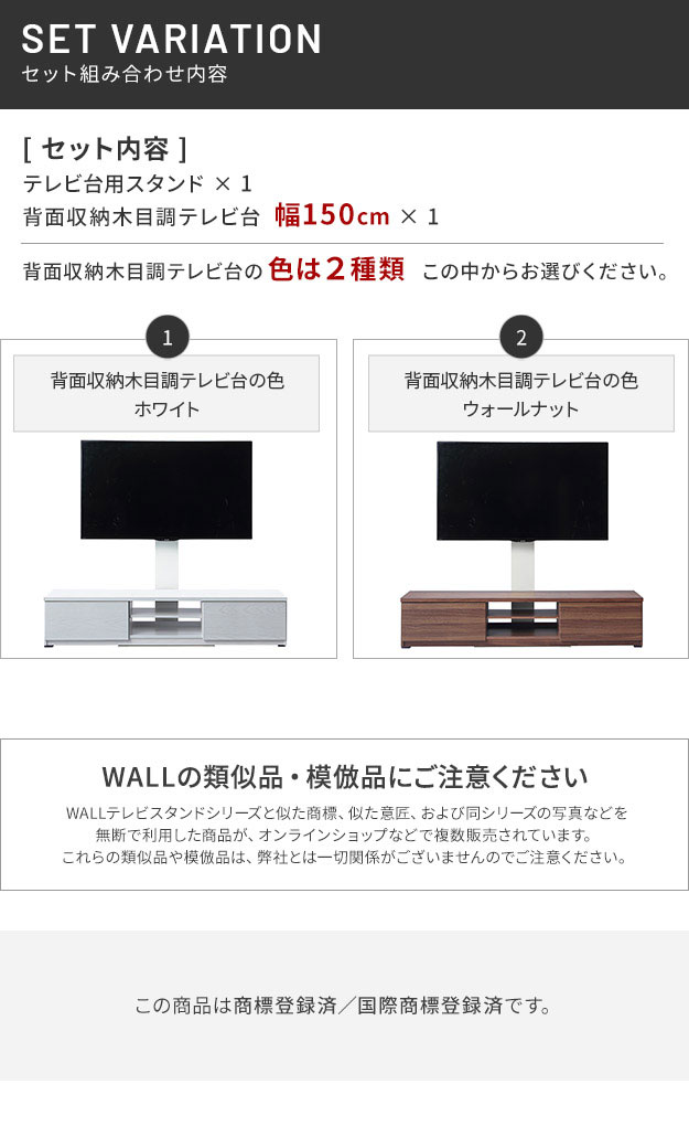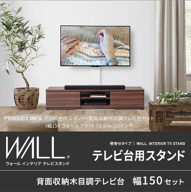 【震度7耐震試験済み/32〜60インチ対応】WALL(ウォール) インテリアテレビスタンド テレビ台用スタンド+背面収納木目調テレビ台セット 幅150cm 2色対応 テレビ台 TVスタンド 高さ調節 リビング 寝室 おしゃれ