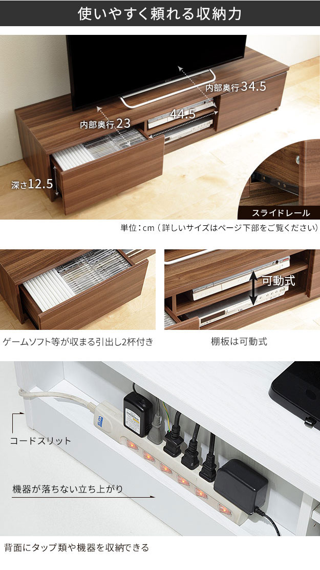 背面収納木目調テレビ台:W150 x D40 x H31cm