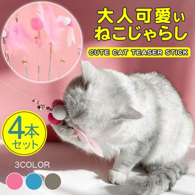 【4本セット】ねこじゃらし 猫グッズ 猫用品 羽根 鈴 おしゃれ かわいい おねこさま 運動不足改善 ストレス解消