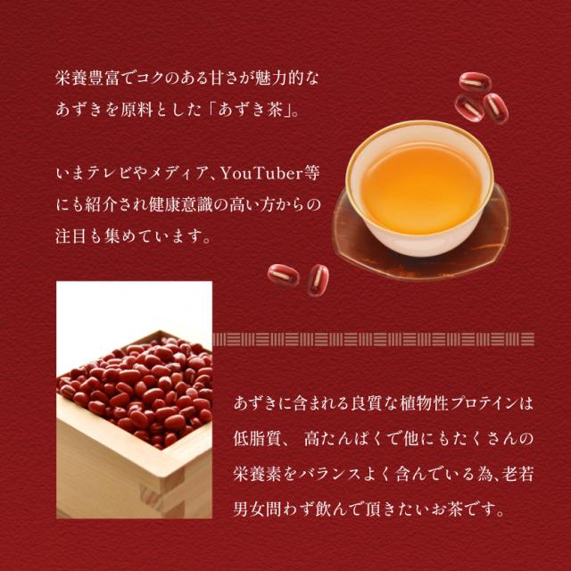 重量で管理しているため、包数が異なる場合があります。 古来からのスーパーフードとして、今また再注目されている「あずき」 北海道産100%の小豆を使用し、あずきの豊かな風味とやさしい甘みをお楽しみ頂けます。 高温で一気に焼き上げるこだわりの焙煎方法で、 香ばしさも感じる、食事に、おやつに、水分補給に最適なお茶です。 老若男女問わず、好まれる味となっておりますので、ご家族でぜひお召し上がりください。 国産あずき 国産小豆 あずき 小豆 北海道産あずき 北海道産小豆 あずき茶 あずき茶 あずき茶 あずき茶 あずき茶 日本茶
