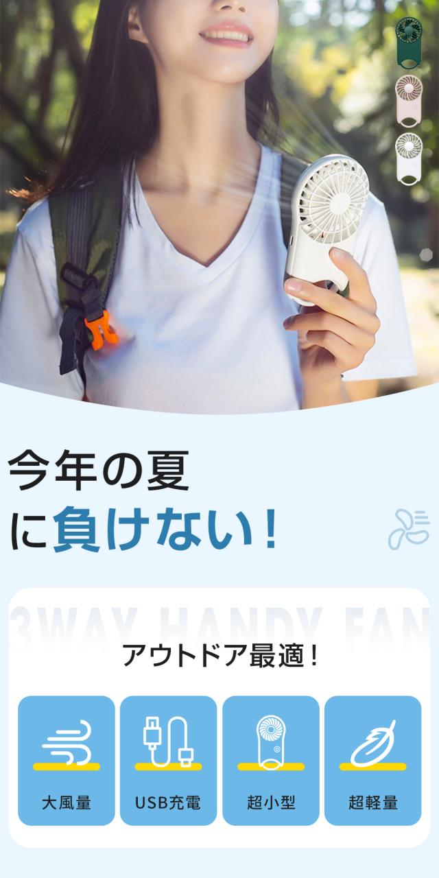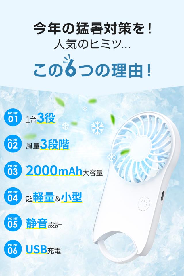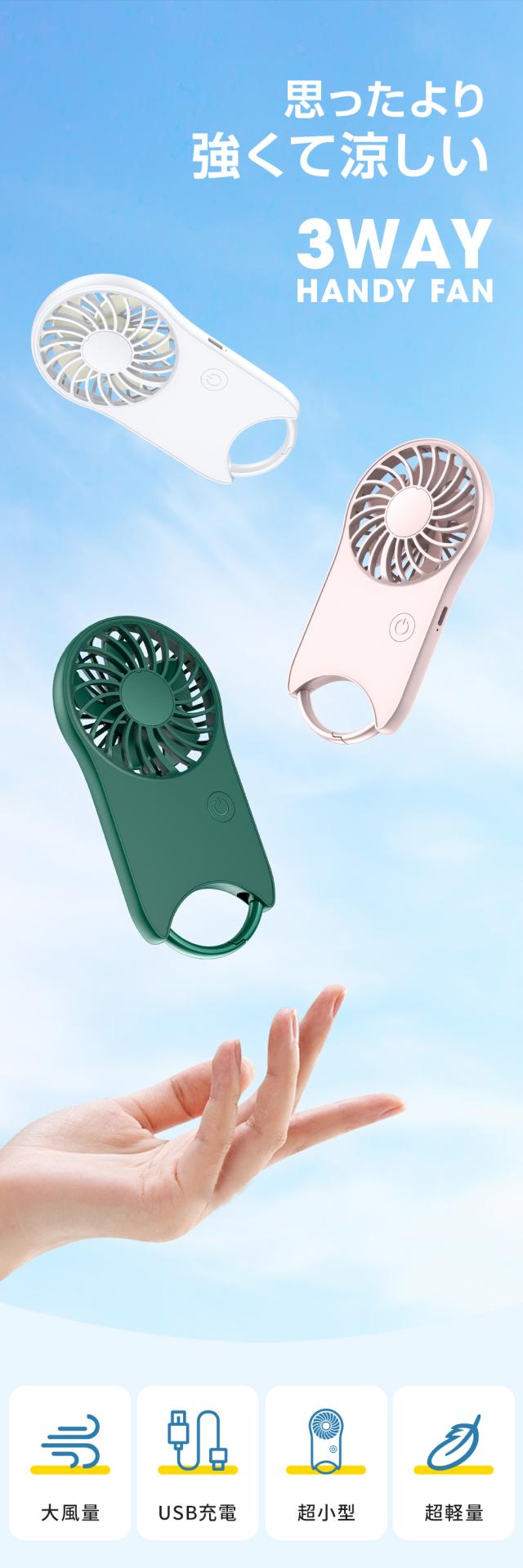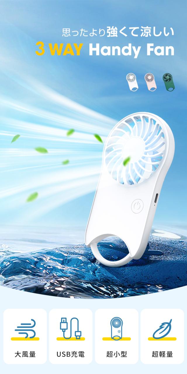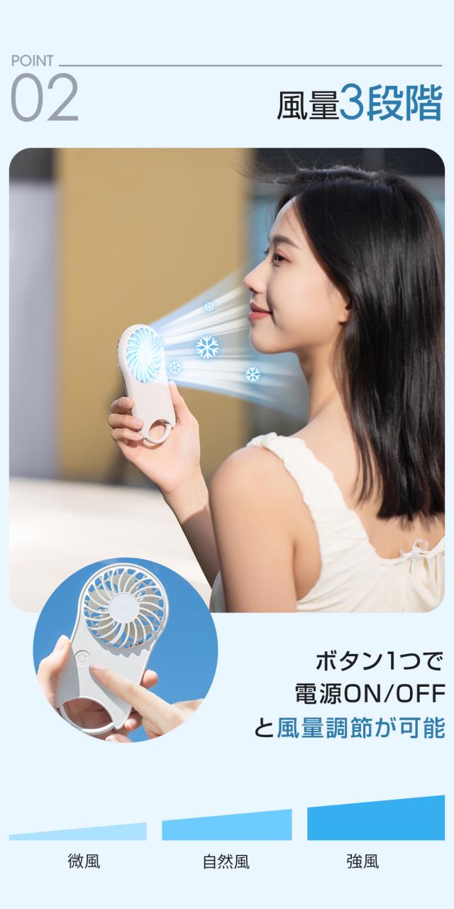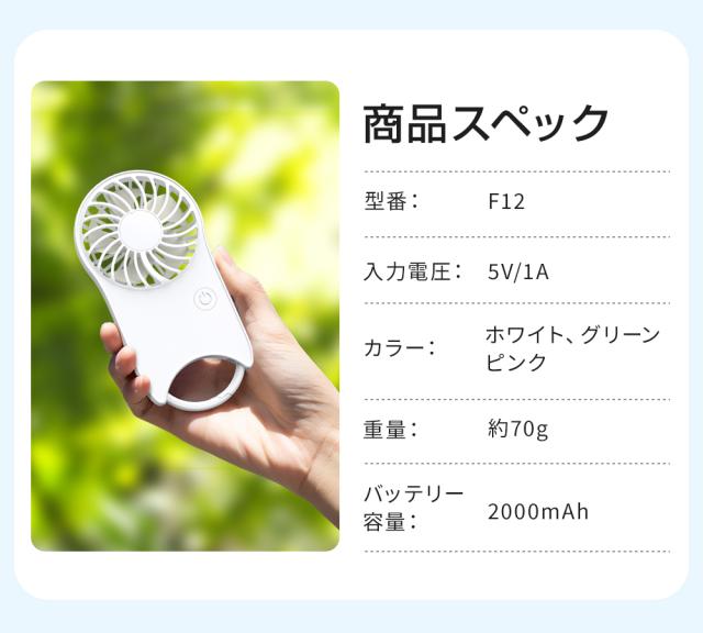 ハンディファン 手持ち扇風機 小型 2000mAh 大容量 3段階風量 USB充電式 小型扇風機 軽量 熱中症対策/暑さ対策 ハンディ扇風機 超静音