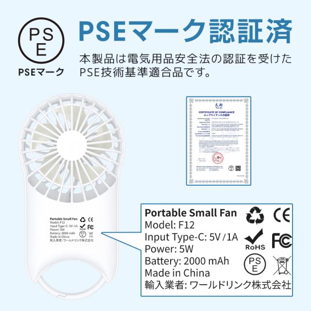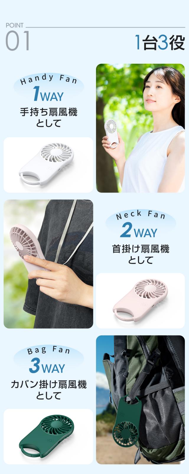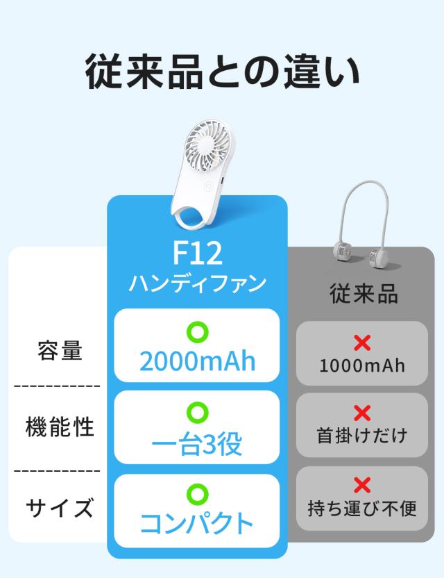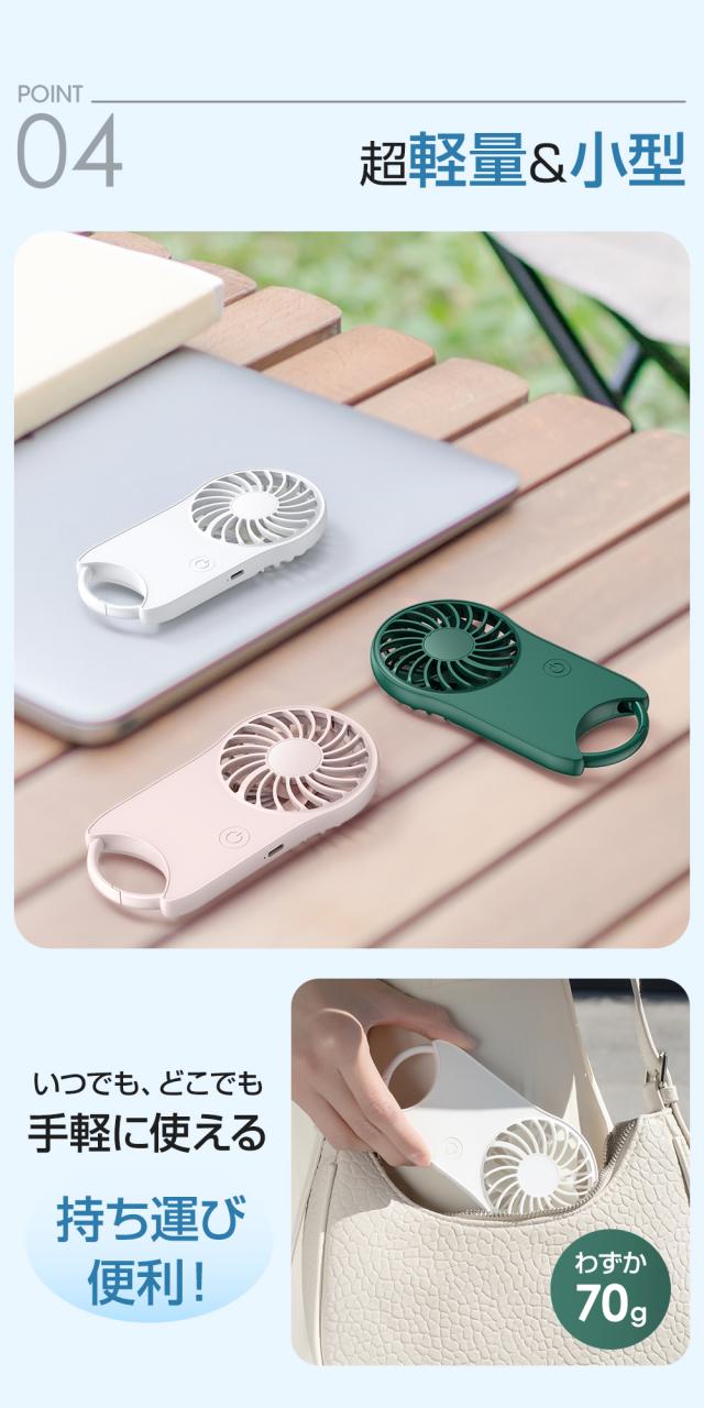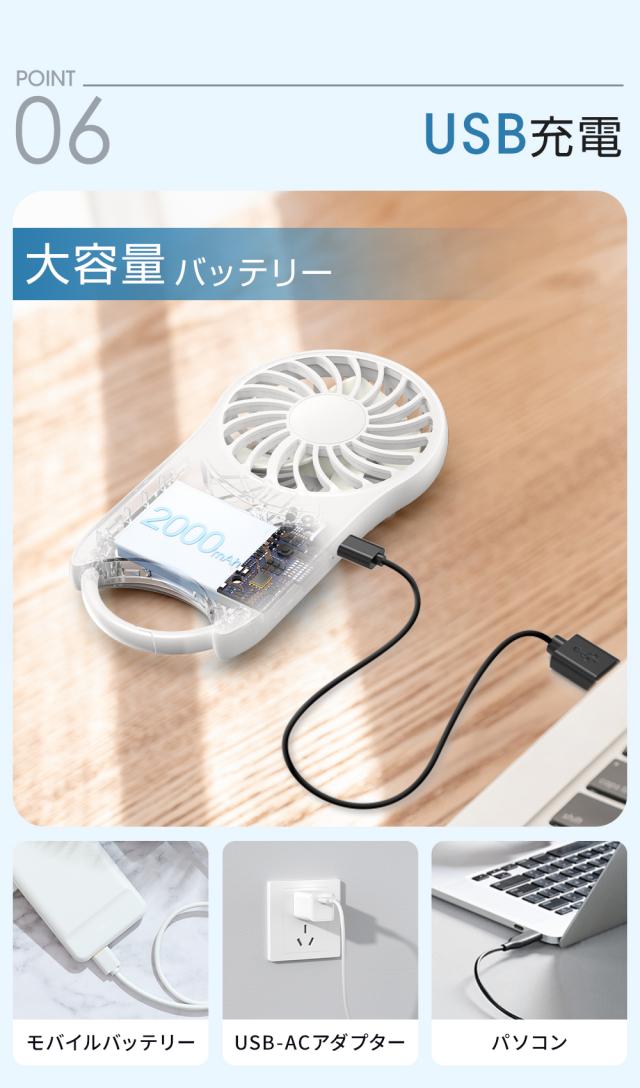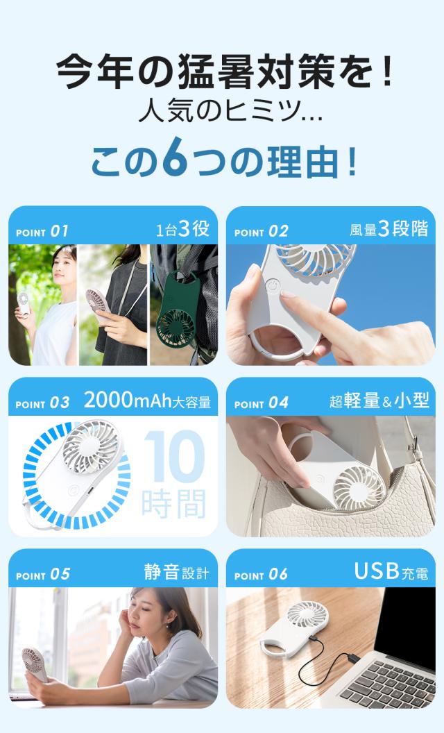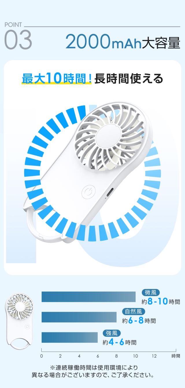 ハンディファン 手持ち扇風機 小型 2000mAh 大容量 3段階風量 USB充電式 小型扇風機 軽量 熱中症対策/暑さ対策 ハンディ扇風機 超静音