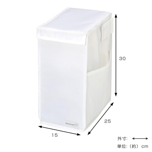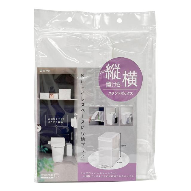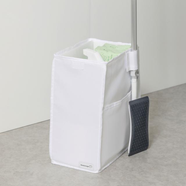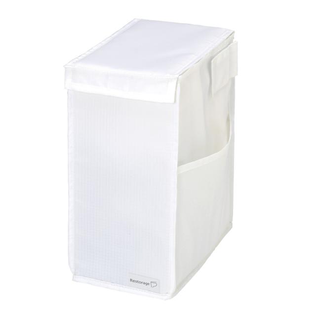 トイレ収納 Rst スタンドボックス ( Restorage 掃除用品 収納 ボックス 箱 フタ付 折りたたみ スリム トイレ サニタリー 掃除 フロアワイパー立て シンプル 無地 ホワイト )