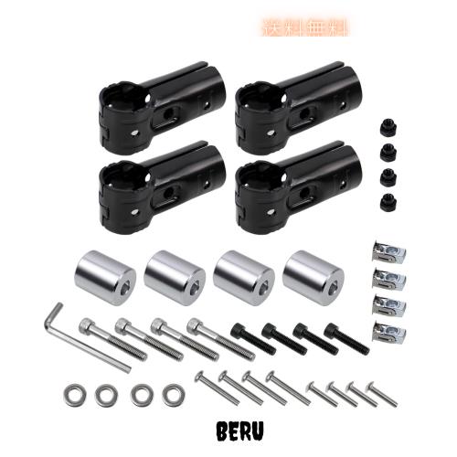 Jeyaic φ28イレクターパイプ用 車用ルーフキャリアバー スペーシアパイプアタッチメント+角穴アダプター4個セット | アルミ製 DIY取り付