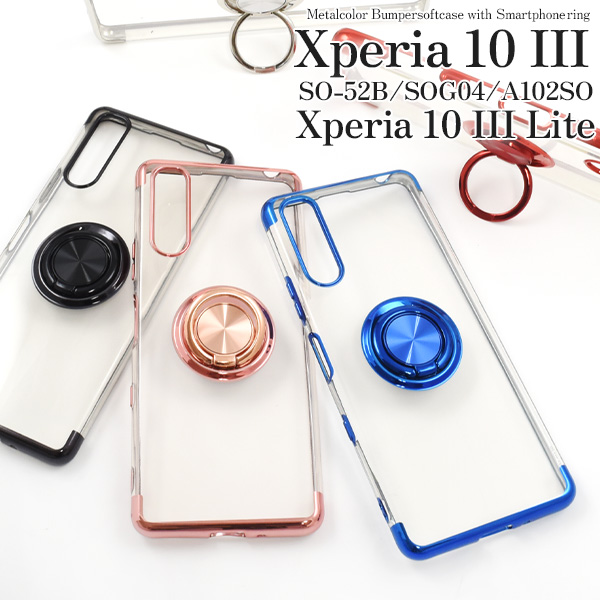 スマホケース Xperia 10 III SO-52B SOG04用 スマホリング付き メタルカラーバンパー ソフトケース おしゃれ 上品 携帯ケース 装着簡単 可愛い かわいい 韓国風 背面保護 メタリックカラー スマートフォンケース スマホカバー 韓国 韓国っぽ シンプル スマートフォンケース