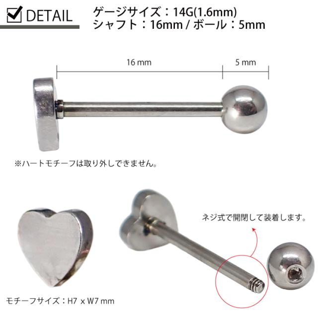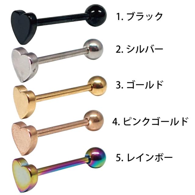 【メール便対応】ハートバーベル カラー 14G(1.6mm) シャフト16mm ボール5mm 5カラー ハート デザイン ストレートロングバーベル サージカルステンレス【ボディーピアス インダストリアル スタンダード 14ゲージ】┃