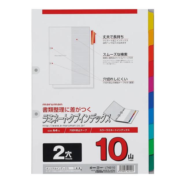 [マルマン]A4 ラミネートタブインデックス見出し 2穴10山(補強シール付き)[LT4210]