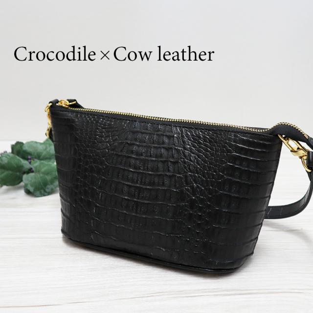 カイマンワニ革 牛革 コンビ2ウェイショルダ− ショルダーバッグ レディース ワニ革 本革 RODANIA ロダニア