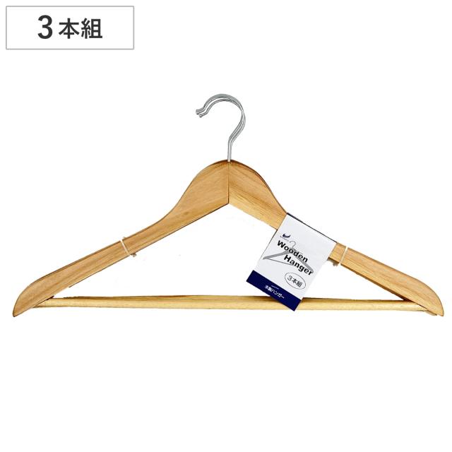 ハンガー 木製 3本組 ( 天然木 衣類収納 洋服ハンガー バー付き 3本 ウッドハンガー 収納 ナチュラル シンプル )
