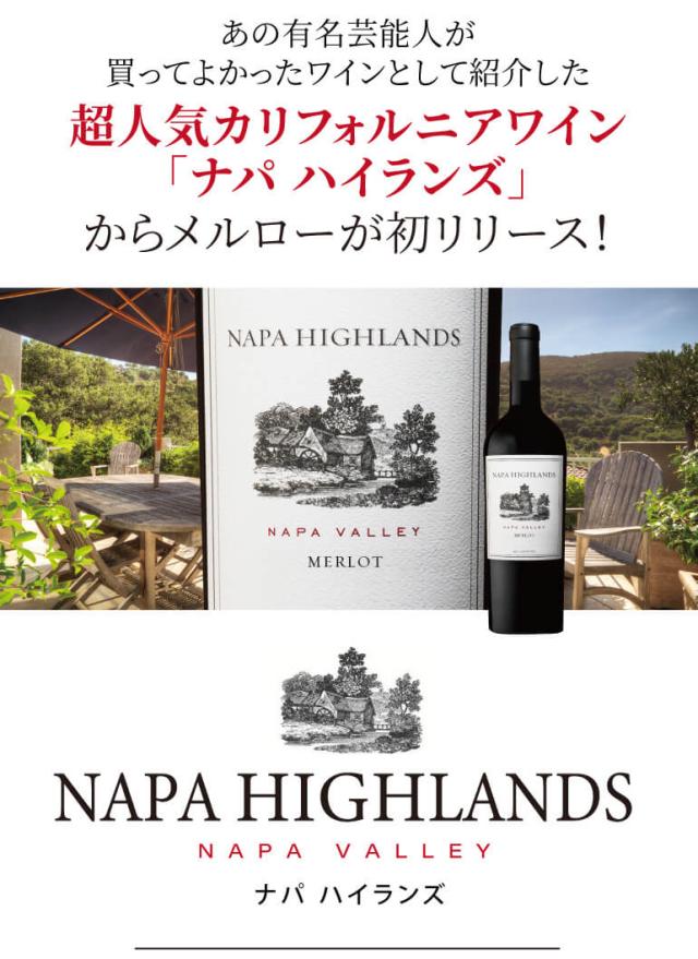 1本あたり4,330円(税込) 送料無料 ナパ ハイランズ メルロー 2023 750ml 6本入 アメリカ ケース 浜運
