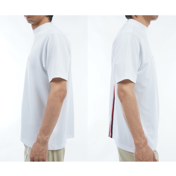トラックをイメージしたシーズンロゴと背中のメッシュシグネチャーストライプテープがポイントのモックネックシャツです。衿後ろはストレッチ素材で着脱しやすくなっています。