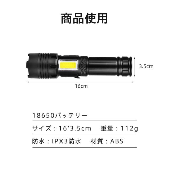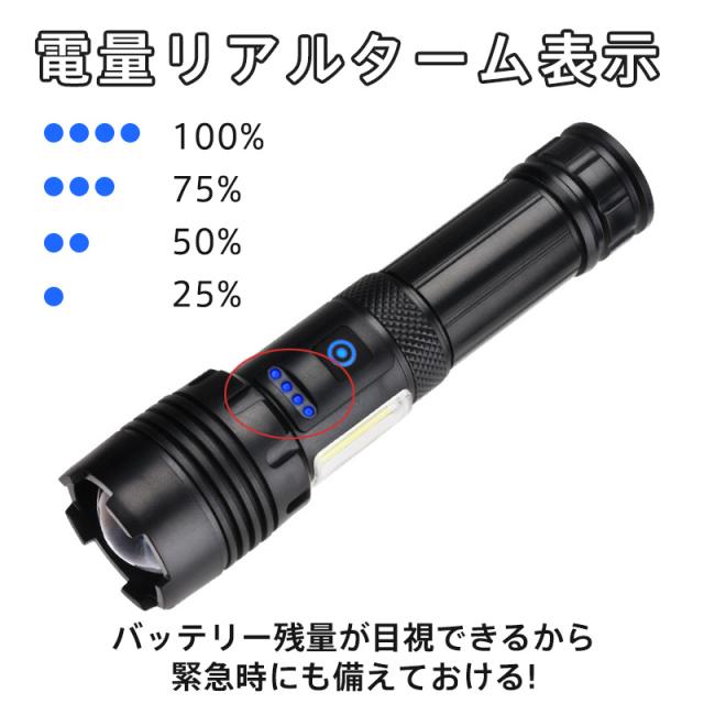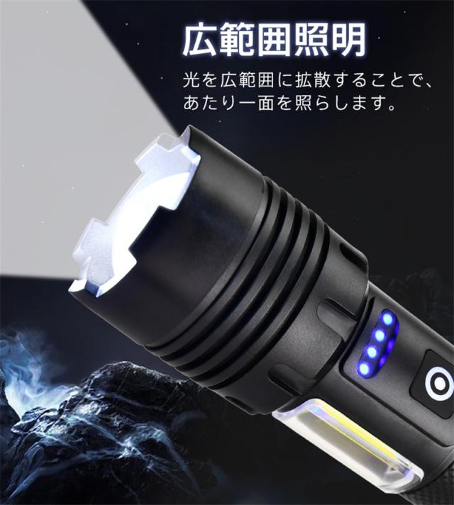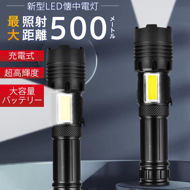 懐中電灯 LEDライト ハンディライト 充電式 タクティカルライト ledライト 電池残量 高輝度 防災用 コンパクト キャンプ
