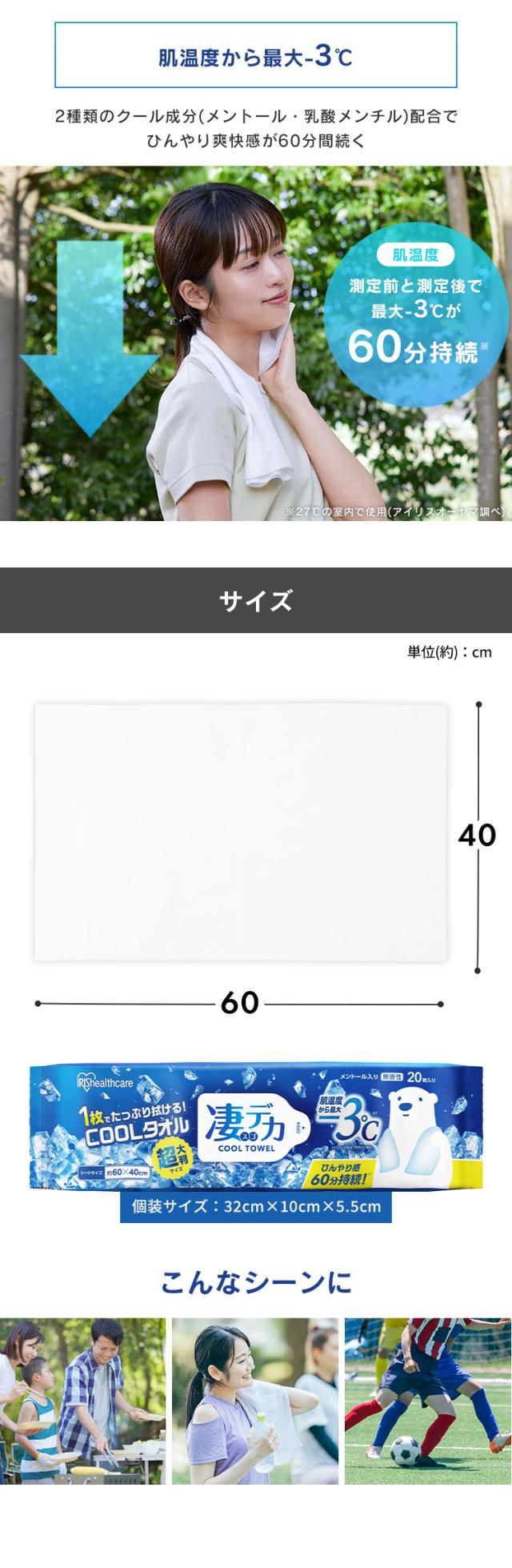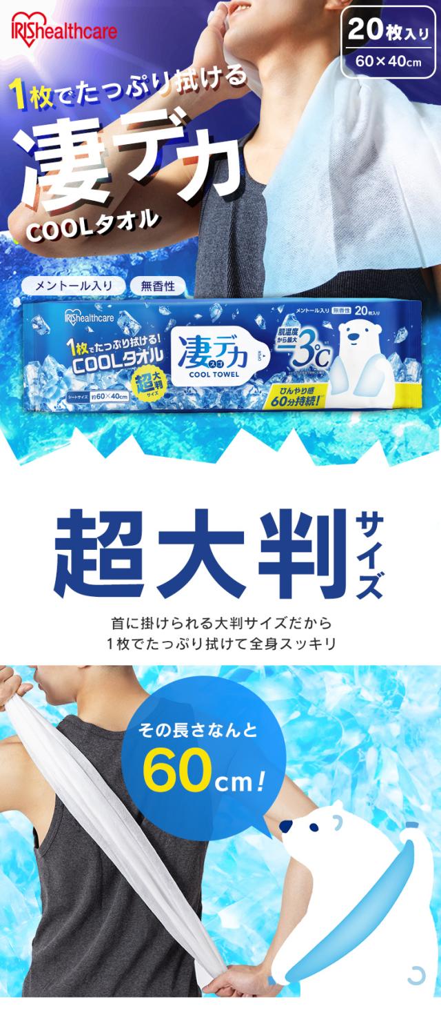 【2個セット】ウェットタオル 大判 体拭きシート 汗拭きシート 無香性 冷たい メントール 冷感 冷却 使い捨て 制汗シート 熱中症対策 暑さ対策 スポーツ アウトドア キャンプ 運動後 40枚 凄デカクールタオル アイリスオーヤマ SCLT-20
