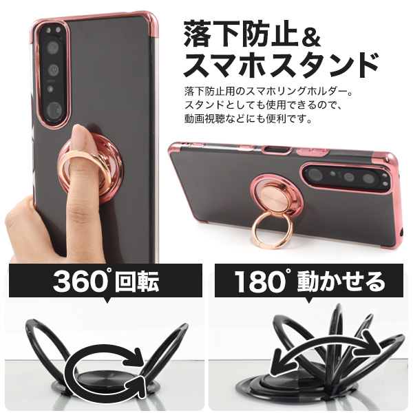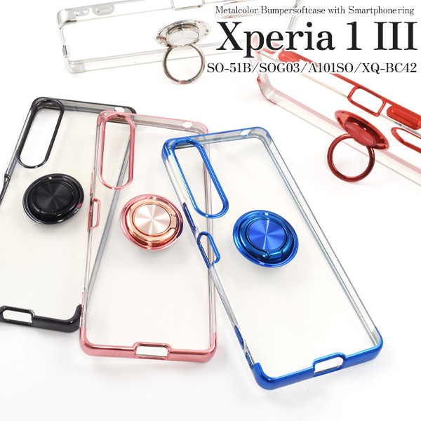 スマホケース Xperia 1 III SO-51B SOG03 A101SO用 スマホリング付き メタルカラーバンパー ソフトケース おしゃれ シンプル 携帯ケース 上品 装着簡単 かわいい お洒落 韓国風 背面保護 メタリックカラー スマートフォンケース スマホカバー 韓国 韓国っぽ