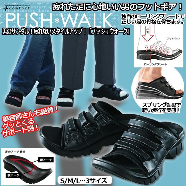 男のサンダル!疲れないスタイルアップ!「プッシュウォーク」 (メンズサンダル 男性用 疲れない 立ち仕事向き 腰痛対策)