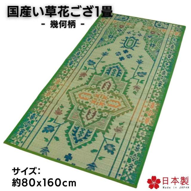 国産 い草1畳花ござ裏貼 幾何柄 80x160cm 廊下敷 リビングマット 玄関マット スベリ止め裏貼 岡山県産 日本製
