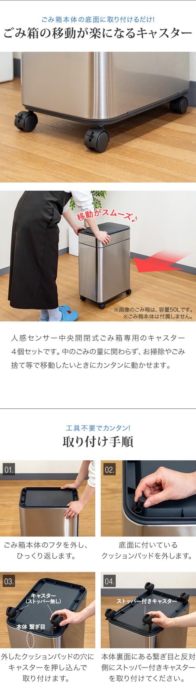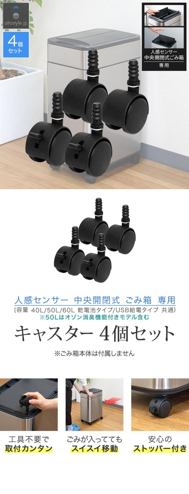 自動開閉 ゴミ箱 専用キャスター4個セット 人感センサー中央開閉式ごみ箱シリーズ 40L/50L/60L用 人感センサー 中央開閉式 ステンレスごみ箱 センサー自動開閉式 ダストボックス ※キャスターのみ/ゴミ箱本体別売 1年保証 送料無料
