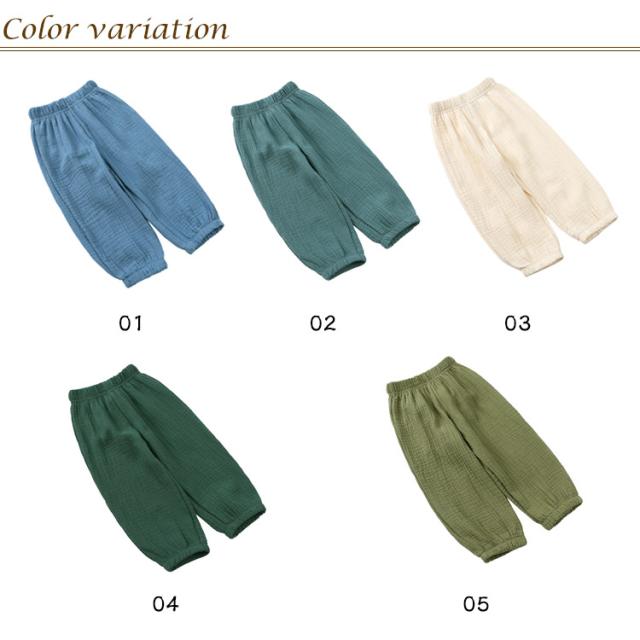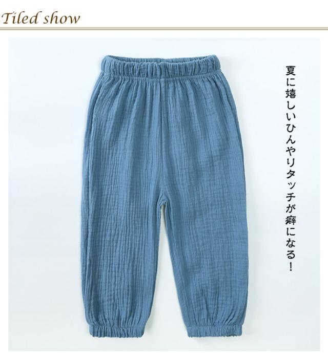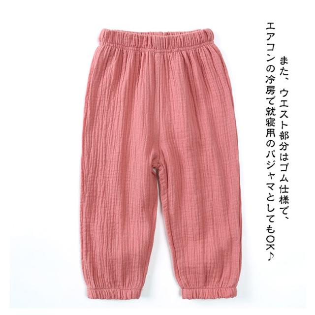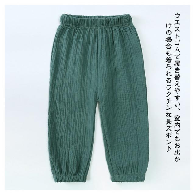 キッズ 子供服 女の子 虫よけ 長ズボン 2重ガーゼ 薄手 ジョガーパンツ 送料無料 男の子 春夏用 涼パンツ サルエルパンツ バルーンパンツ 涼しい 無地 綿 普段着 日除け カジュアル 保育服 送料無料 通園 通学 ルームウェア 虫刺され防止