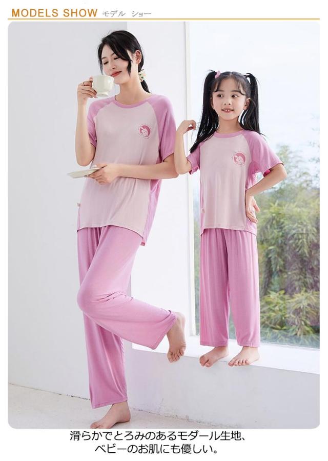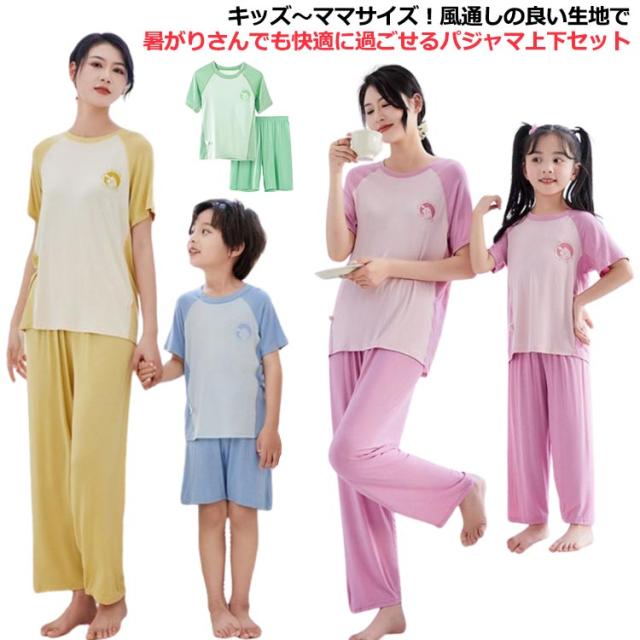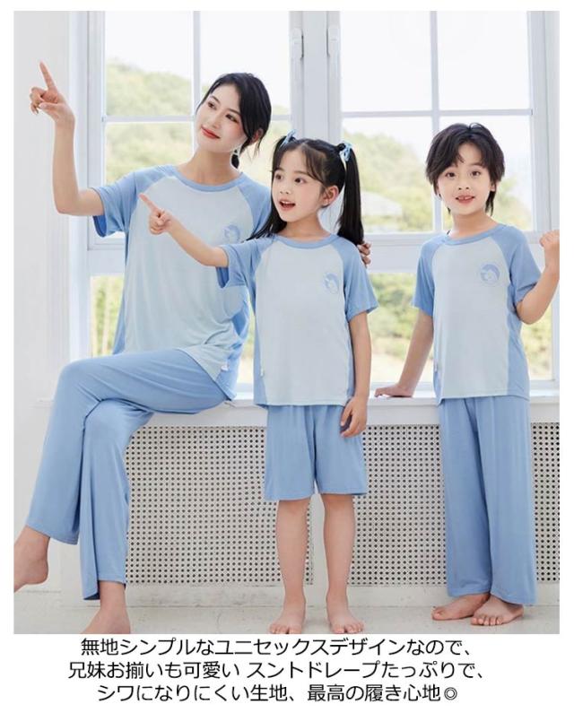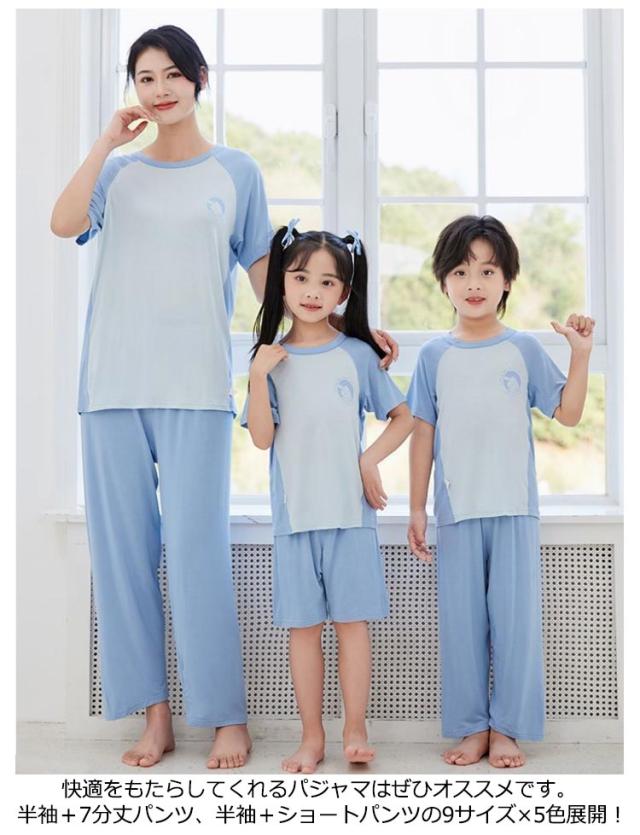 女の子 親子お揃い 140 冷感 パジャマ ルームウェア 春 半袖 ママ 上下セット おしゃれ ロングズボン 180 Tシャツ 男の子 ショートパンツ 150 100 薄手 120 130 110 夏 160 170 涼感 パジャマ 涼しい 接触冷感 爽やか 夏用 子供 部屋着 柔らか お洒落 シンプル