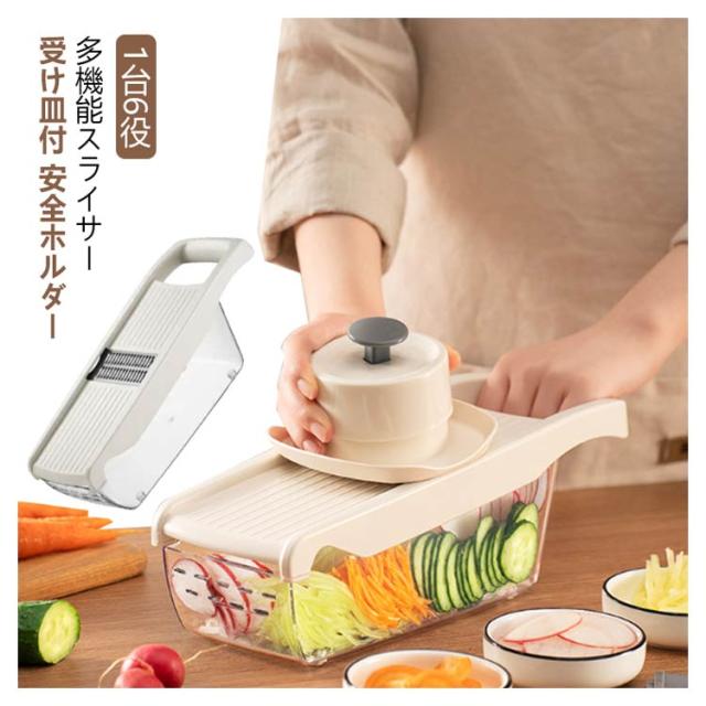千切り 1台6役 スライサー 指切り防止 多機能 千切り 野菜 大根 みじん切り スライサー スライサー セット 安全ホルダー 水切り 細切り 薄切り 千切りスライサー プログレード 人参 きゅうり じゃがいも サラダ 玉ねぎ