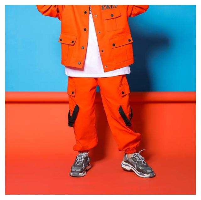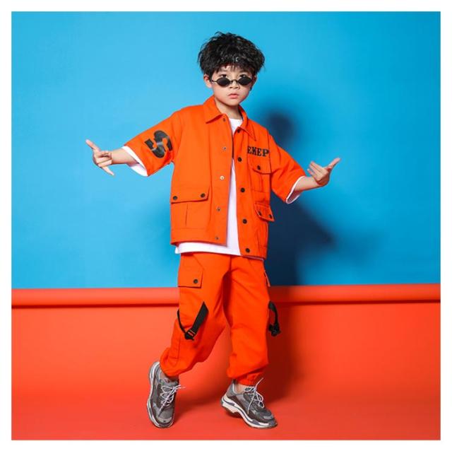 男の子 ダンス トップス ダンス衣装 ヒップホップダンス 衣装 ヒップホップ HIPHOP キッズ オレンジ 半袖 セットアップ 女の子 男女兼用 演出服 ジャズダンス シャツ ダンストップス ダンスパンツ 練習着 団体服 原宿系 発表会 jazz キッズダンス ガールズ