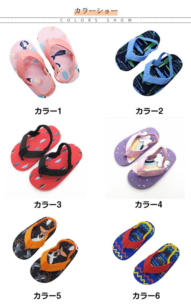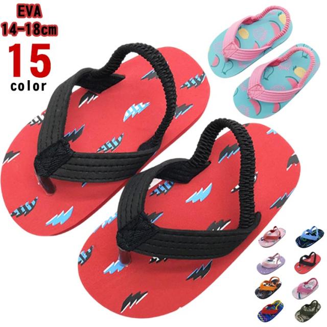 | 【全15色】【14-18cm】【EVA】 軽くて柔らか!夏のレジャーにも大活躍のキッズサンダル 学校のプールや川・海で使いやすいビーチサンダル☆ 屈曲性に優れたやわらか素材で歩きやすく、かかとゴムが付いているので脱げにくい!! レジャーにはもちろん、タウンユースにも活躍してくれるサンダルです。 汚れても丸洗いOK!さっと洗えて水遊びや砂場遊び、海やプールなど夏のレジャーにも大活躍! | |