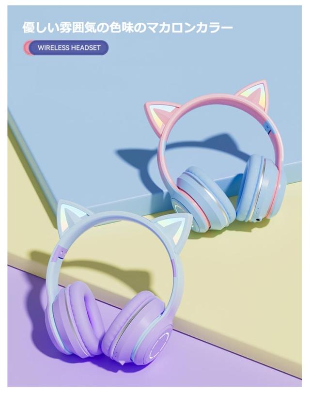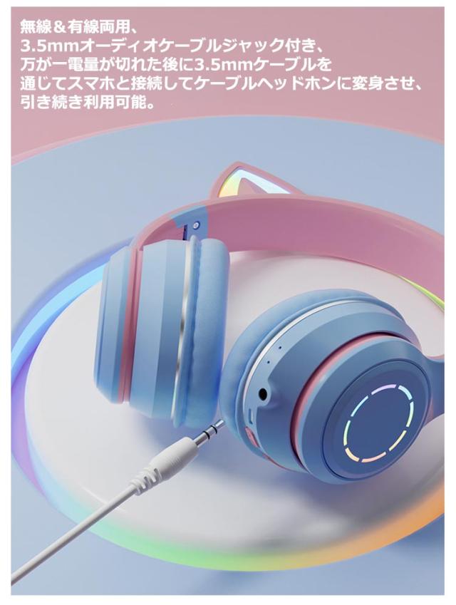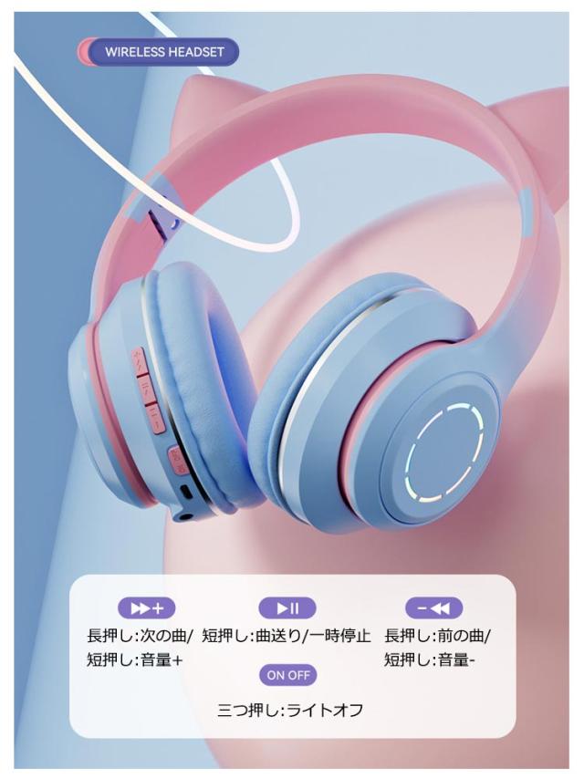 ヘッドセット ヘッドホン 有線*無線 Bluetooth5.3 イヤホン ワイヤレスヘッドホン Bluetooth マイク付き ワイヤレスヘッドホン 猫耳 子供用 ワイヤレスヘッドホン イヤホン 大人用 ヘッドフォン 可愛い 高音質 LEDライト 密閉型