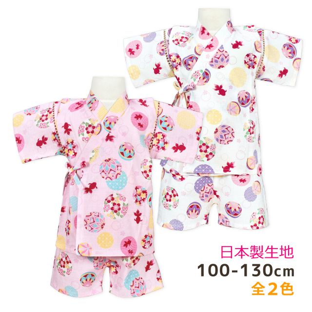 甚平 女の子 金魚 手まり おしゃれ 日本製 生地 可愛い 上下 セット 綿100%全2色