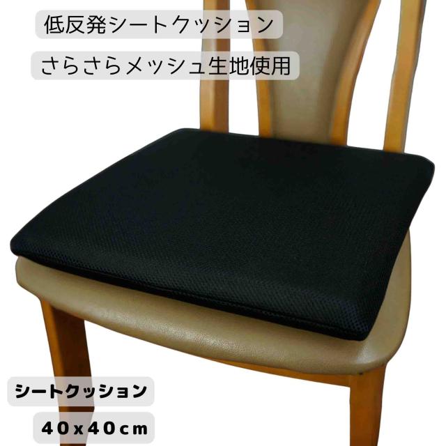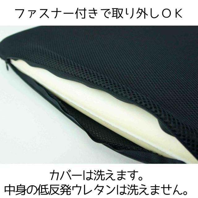 もっちり低反発ウレタン入りシートクッション ブラック色 メッシュ生地 さらさら 通気性 リバーシブル【カバー取り外しOK】