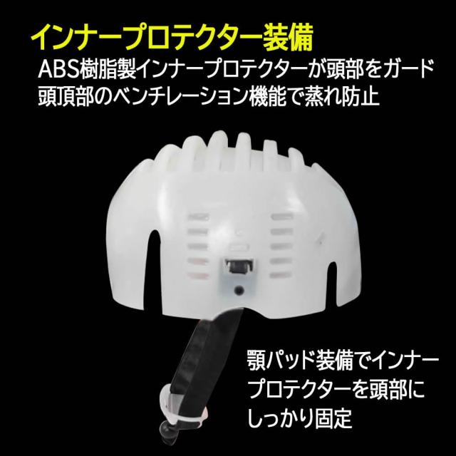 工場など突起物の多い環境での頭部の保護、スポーツ観戦や野球審判など球技の際の頭部の保護などにお使いいただけます。 ABS樹脂製インナープロテクター裏面にEVAを備え、快適性と保護を両立させています