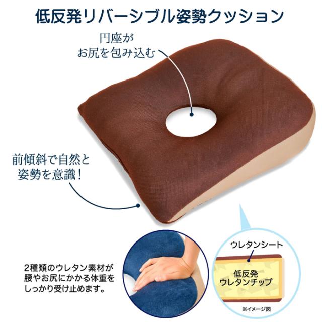 円座クッション 低反発 リバーシブル クッション 椅子用 正方形 車用 シートクッション カーシート 背当てクッション 美姿勢 座布団 背もたれ 背あて 美姿勢 低反発クッション 穴あきクッション