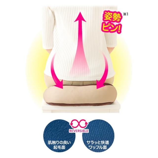 円座としても、背当てとしても使えるこのクッションは、
