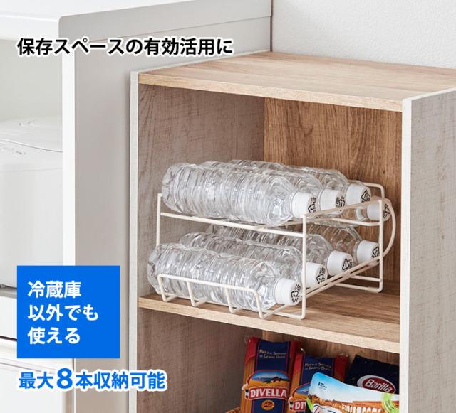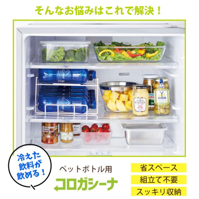 ペットボトルをスッキリと整理し、いつでも冷たい飲み物が手に入る「コロガシーナ」が便利です。