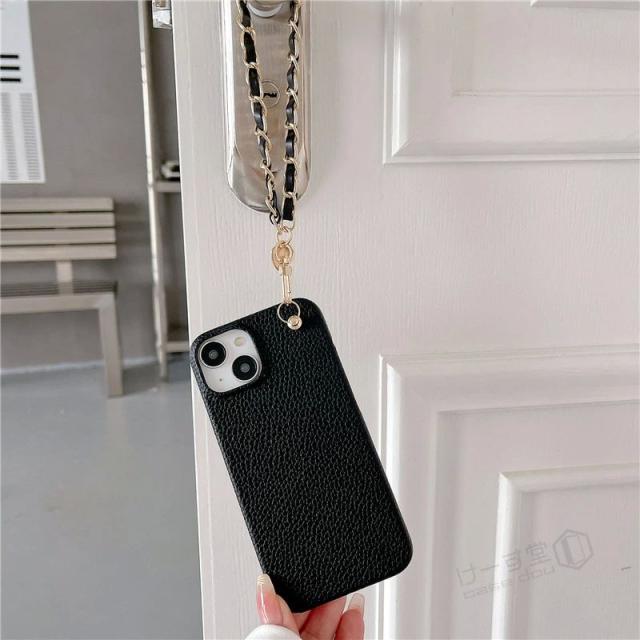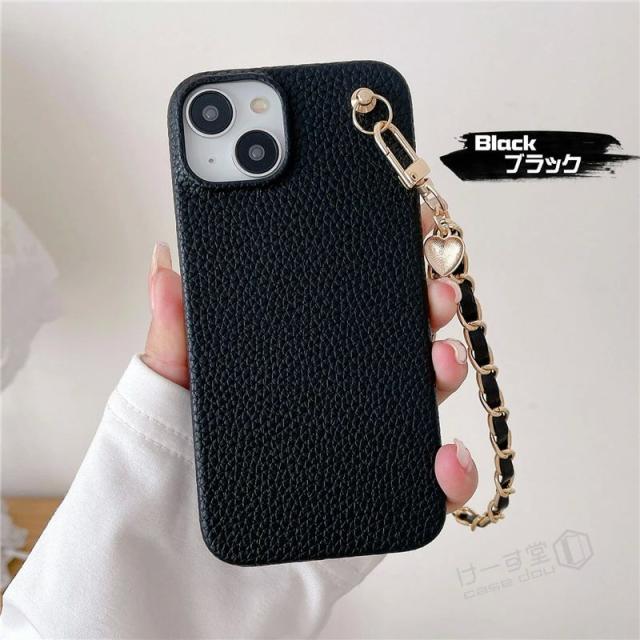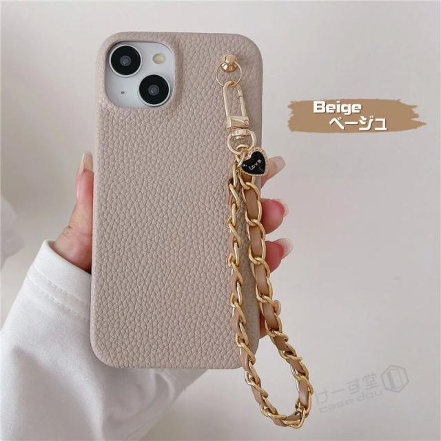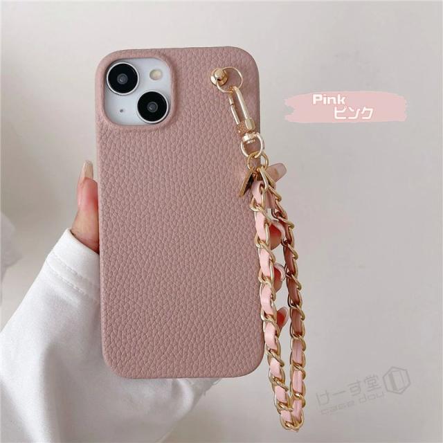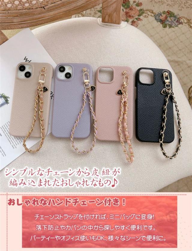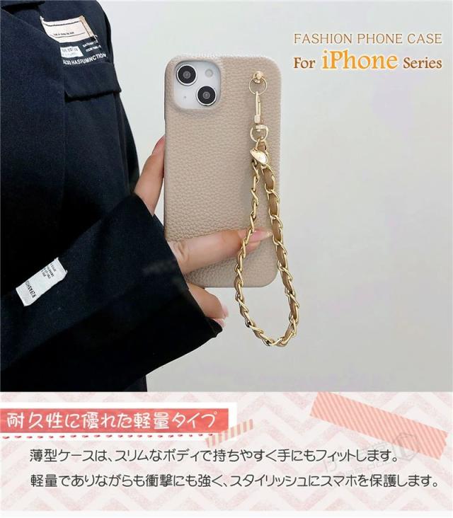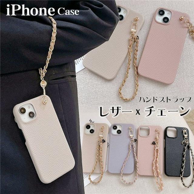 ハンドストラップ付き iphone17pro air 16e 背面カバー ハンド チェーン ストラップ付き おしゃれ iphone16 pro iphone15pro iphone12 ケース アイホン アイフォン 15 14 13 12 11 Pro Max スマホケース チェーン iphone14 ケース 女子 かわいい レザー 大人シンプル 無地