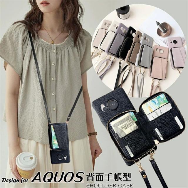 財布一体型 AQUOS R10 Wish5 sense8 ケース ファスナーポケット AQUOS sense9 SH53E SH-M29 sense7 wish4 WISH3 スマホケース 携帯ケース ショルダータイプ カード入れ アクオス R9 R8 プロ ケース 革 アクオス センス8 sense 8 6 7 ケース 韓国 おしゃれ かわいい 可愛い