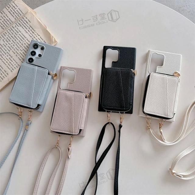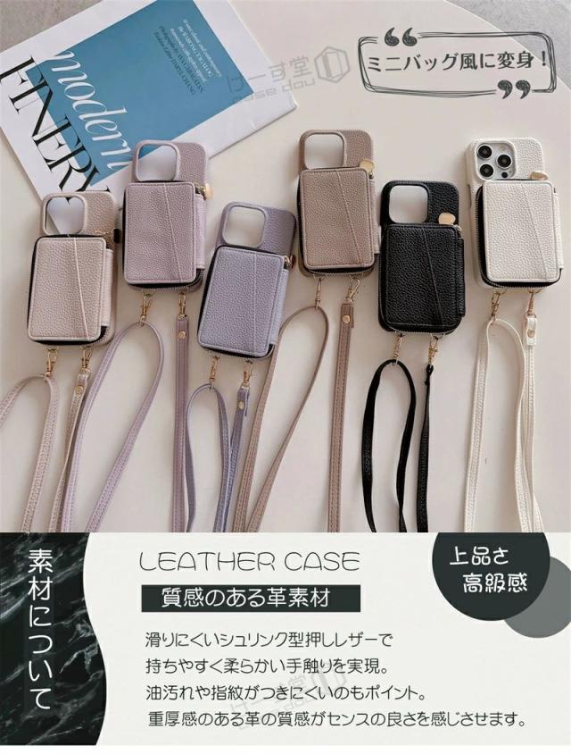 ショルダーストラップ・カード収納付き、おしゃれなレザースマホケースの新登場。