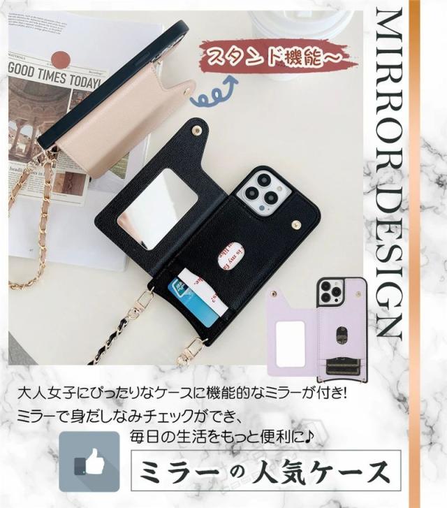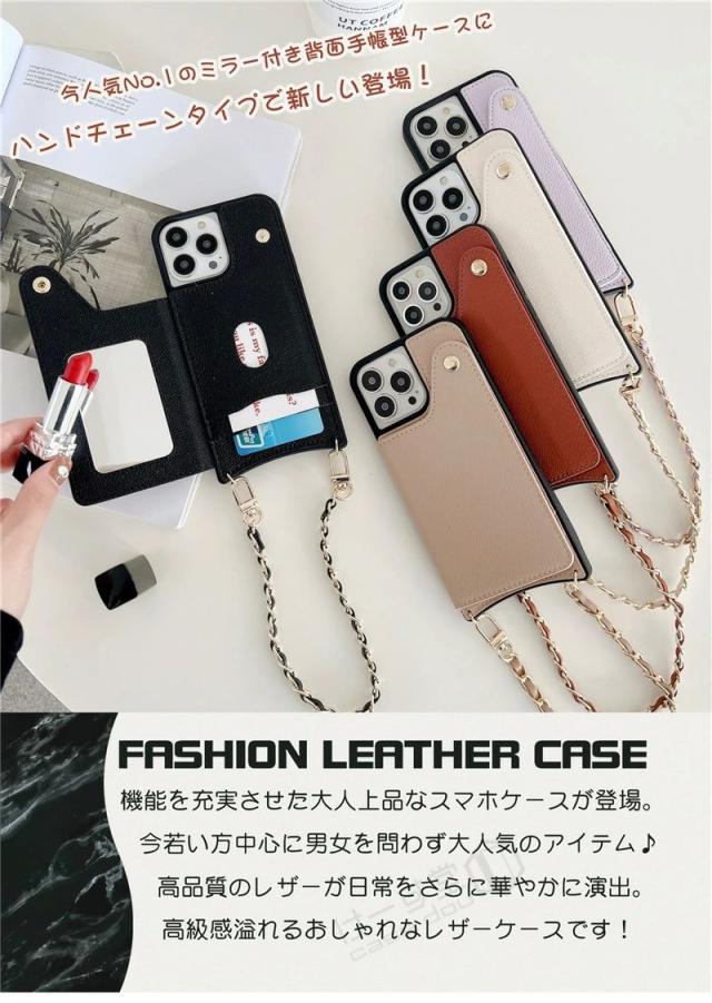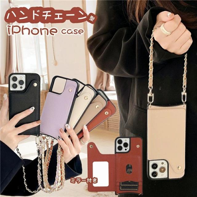 ストラップ付きiphone16 ケース ハンド チェーン ストラップ付き おしゃれ iphone15 14 pro iphone12 13 XR ケース ミラー 鏡付き iphonese ケース アイホン アイフォン 14 13 12 mini 15 Pro Max 11Pro XR XS Max 8 Se スマホケース チェーン 女子 かわいい カードケース