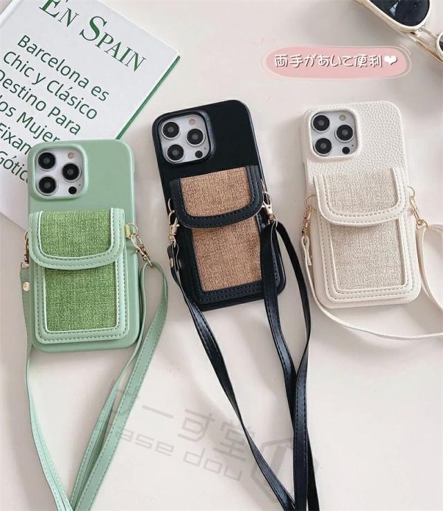 ストラップ付き iphone 17 pro air スマホケース iPhone16 Pro max ケース ショルダー iPhone13 Pro Max iPhone12 Pro Max ケース iPhone14 Pro max iPhone15 plus iPhone11 カバー 可愛い カード収納 韓国 大人かわいい 肩掛け カード落ちない カードホルダー 斜めかけ