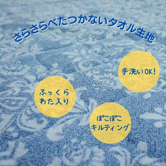 お子様のお肌に優しいタオル素材ラグ ソフトメント 185x240cm ブルー色 ふっくらキルティング ご家庭で洗える 北欧柄 長方形 3畳用